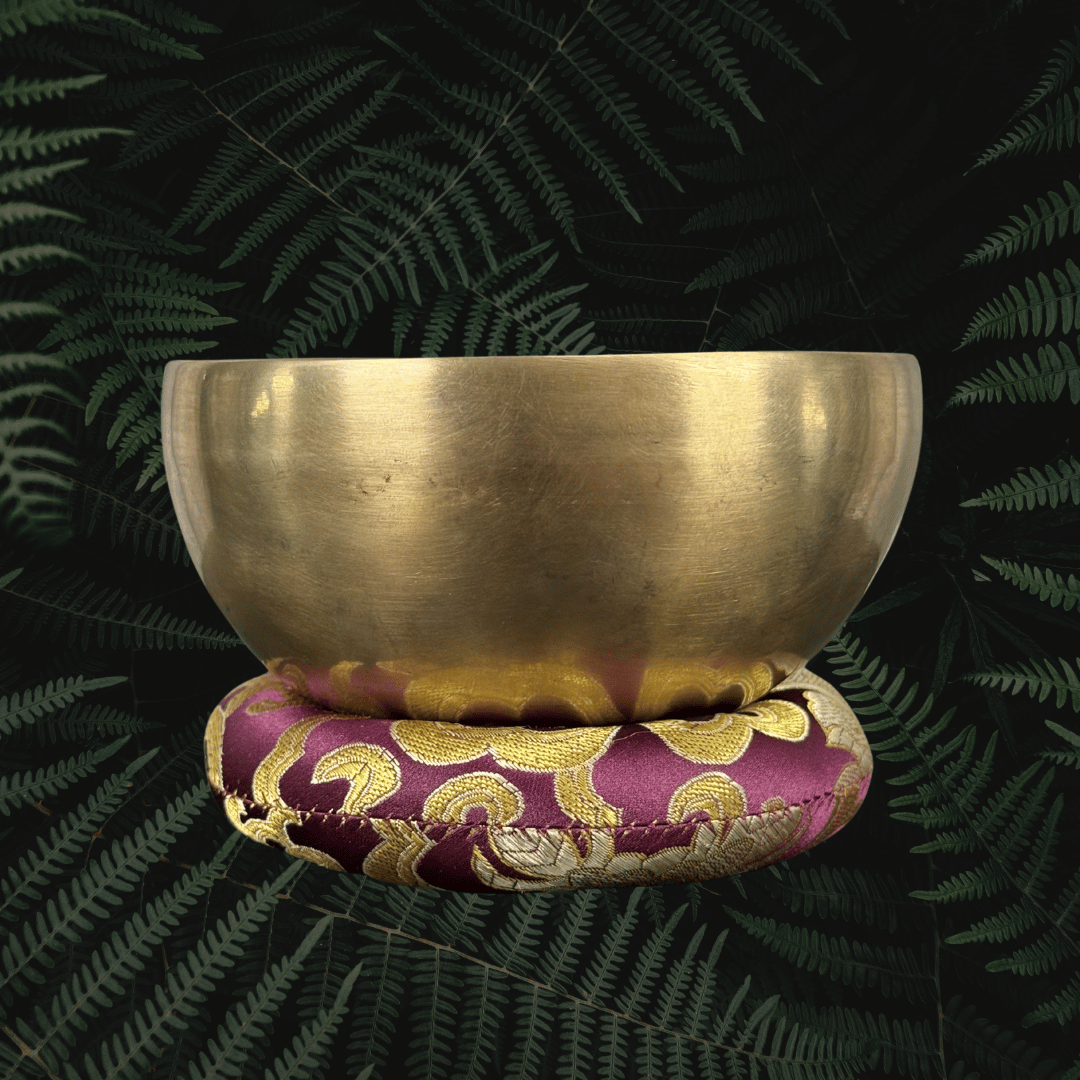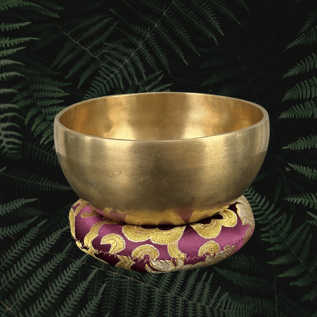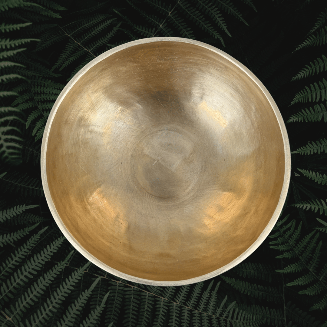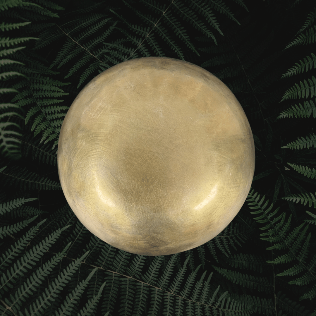 Elegant matte gold Handmade Singing bowl producing a warm, deep tone with long-lasting resonance. Perfect for meditation, yoga, relaxation, and sound healing practices.